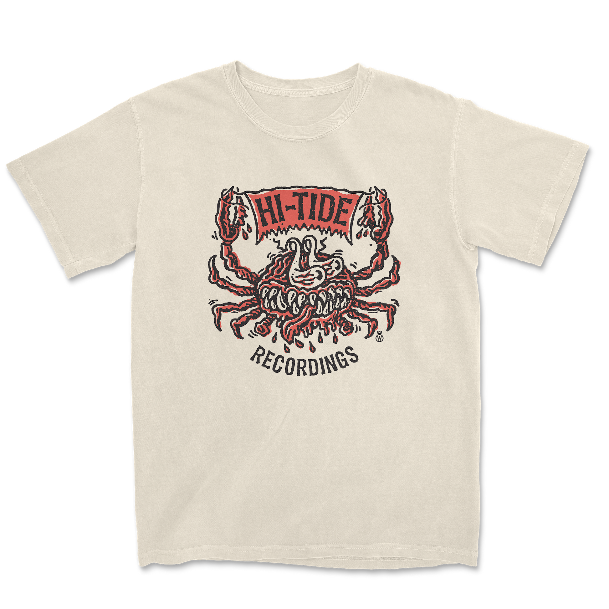 Hi-Tide Vintage "Crabula" T, designed by Justin Moll! Originally released 2021. Black & coral print on SAND garment-dyed Comfort Colors 1717 heavyweight T for a relaxed fit & well-loved feel.