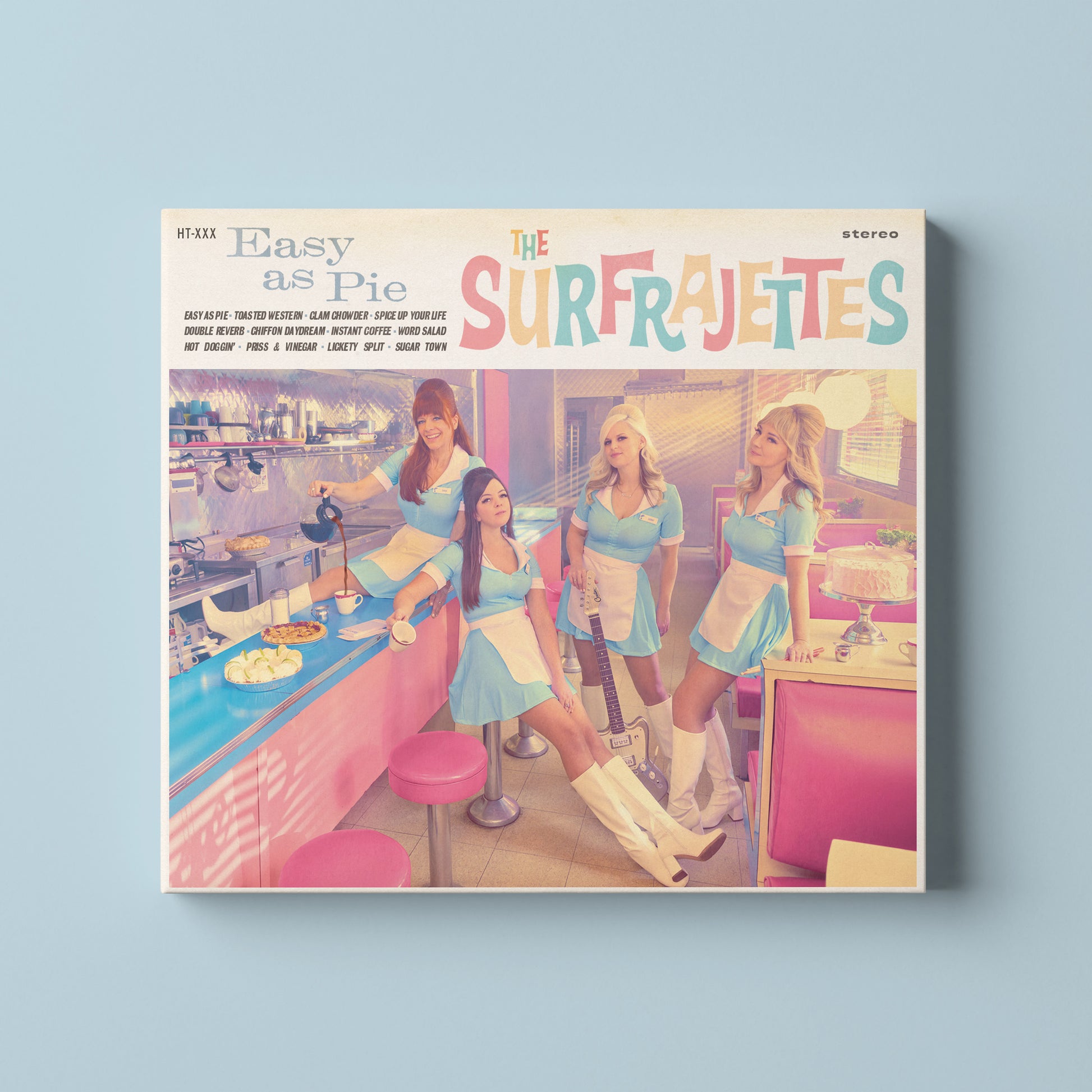 ORDER UP! Welcome to THE SURFRAJETTES DINER, where your favourite surf-slinging waitresses are serving up this fresh outta-the-oven album! A buffet of delectable delights, this menu certainly has something for everyone. Hope you saved room for dessert! So grab a fork, turn up the stereo, and enjoy a delicious slice of "Easy as Pie"