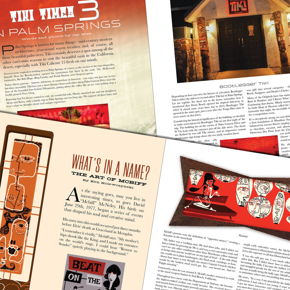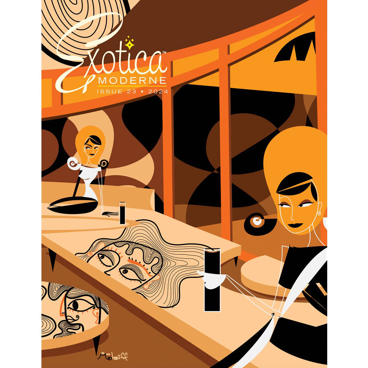Exotica Moderne takes on a decidedly mod look with this issue’s cover by David “McBiff” McNeley. Inside we interviewed McBiff where he traces his journey from being inspired by art to becoming one of Tiki’s most notable artists.