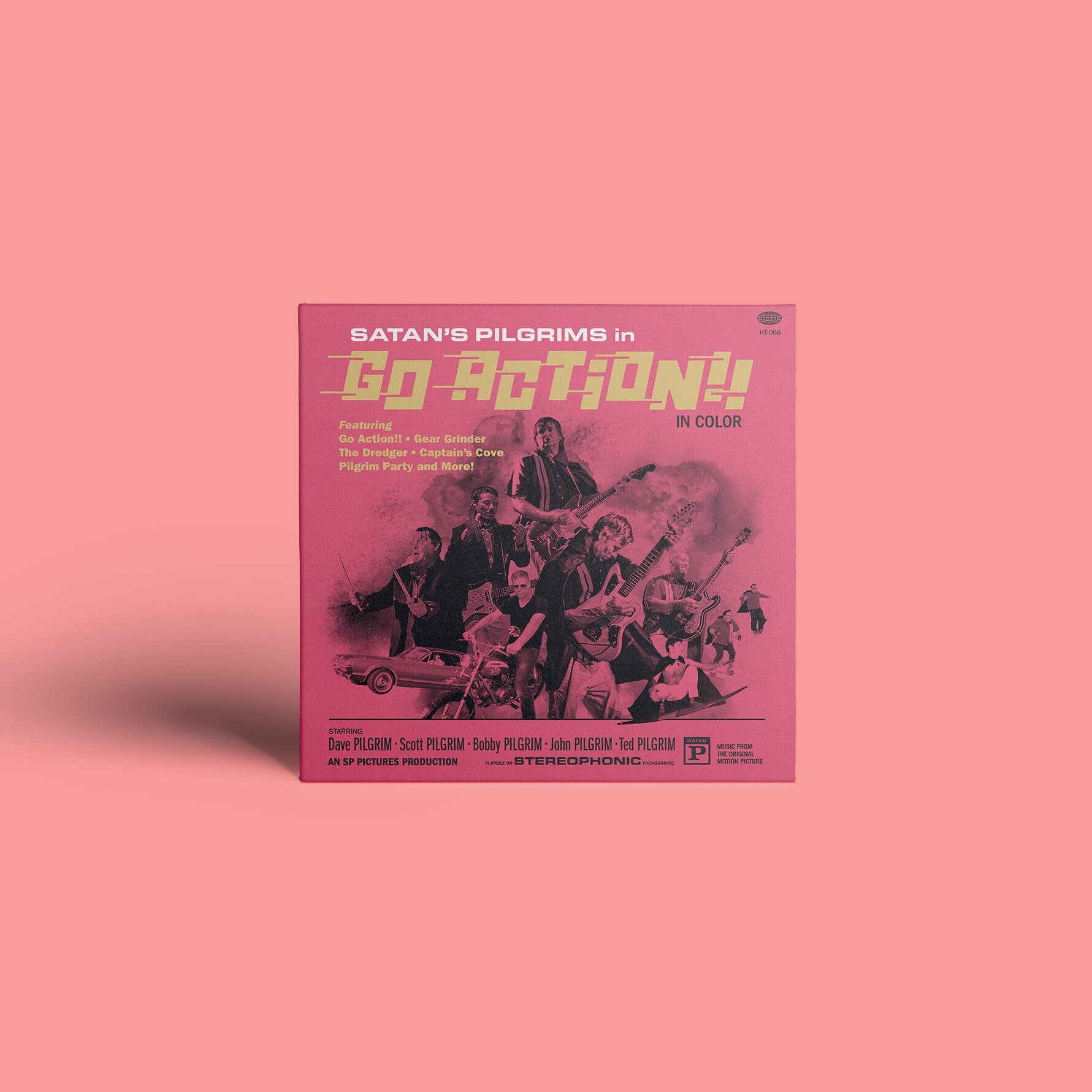 Satan's Pilgrims returns with 14 "action!!-packed" instrumentals on the band's Hi-Tide debut! Paying tribute to recently passed guitarist & founding member Dave Busacker, "Go Action!!" features the jangly guitars, dance beats & spine-chilling fun that has thrilled fans for over 3 decades! Limited pressing on metallic gold swirl colored vinyl. Includes limited 5x7” “Ride Free, Dave!” print by Steve Dukich