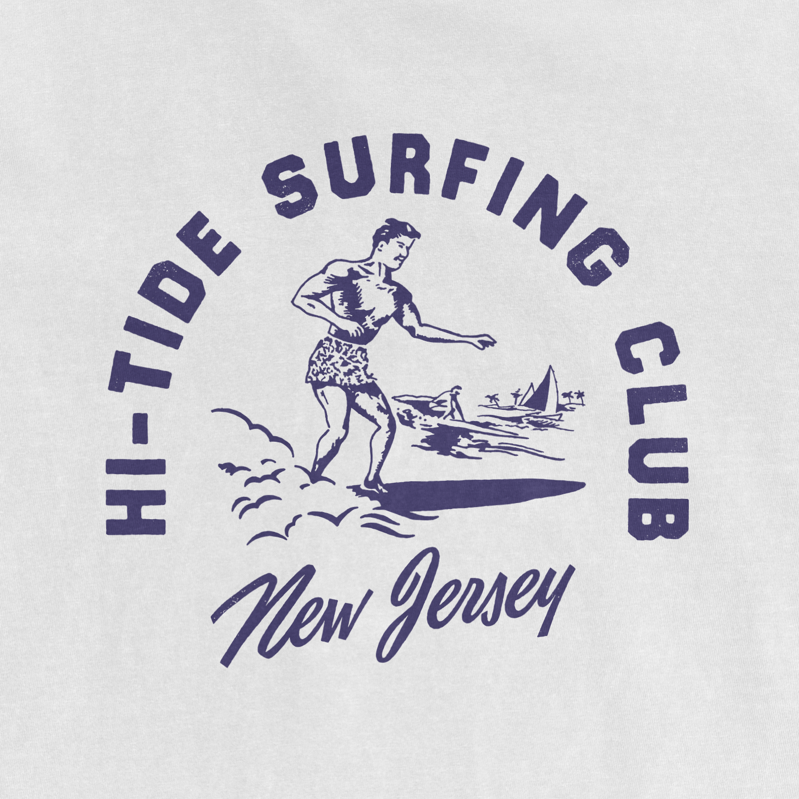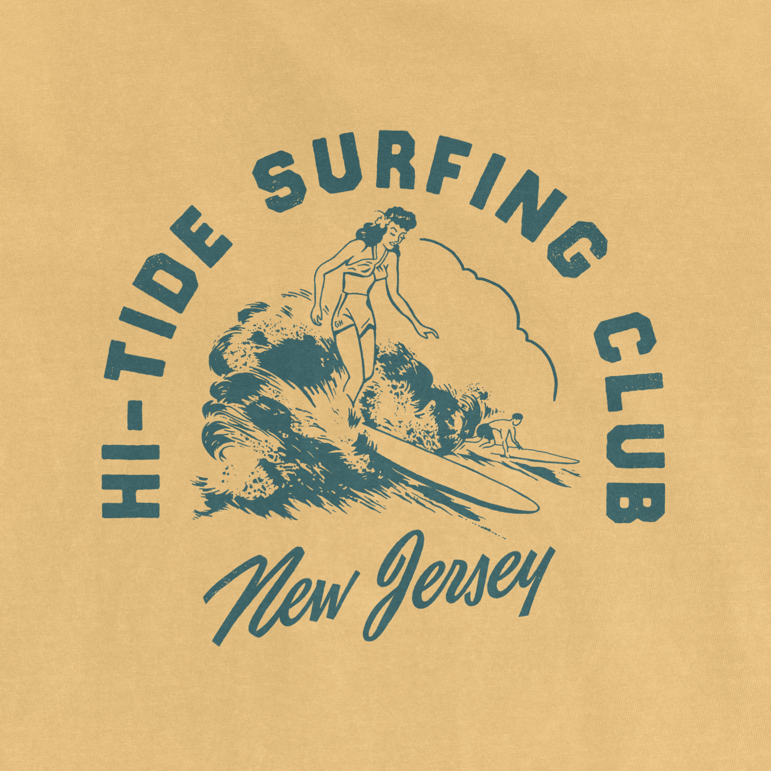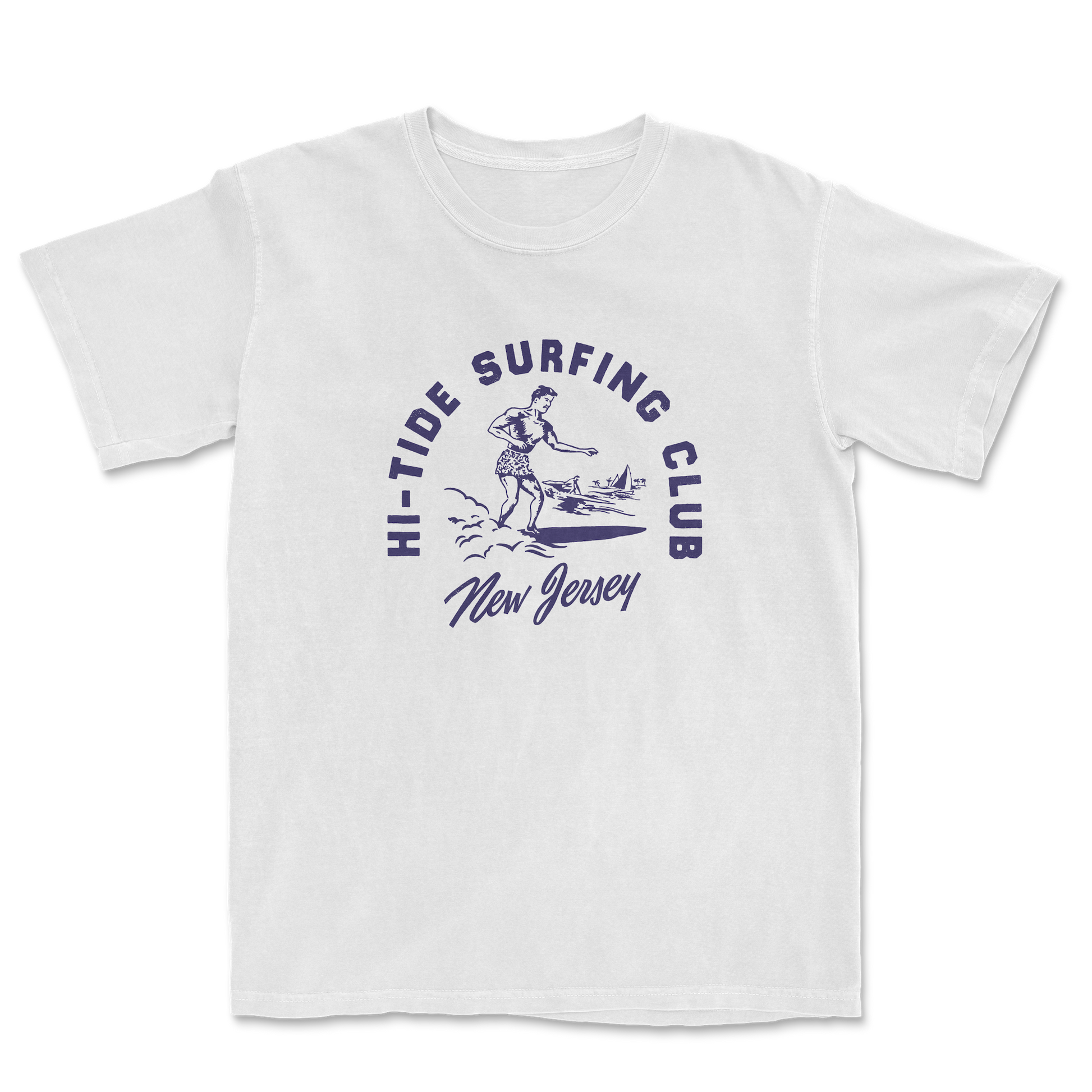 Hi-Tide Vintage "Surfing Club" T, designed by Grey Haas! Originally released 2020. Printed on garment-dyed Comfort Colors 1717 heavyweight T for a relaxed fit & well-loved feel.