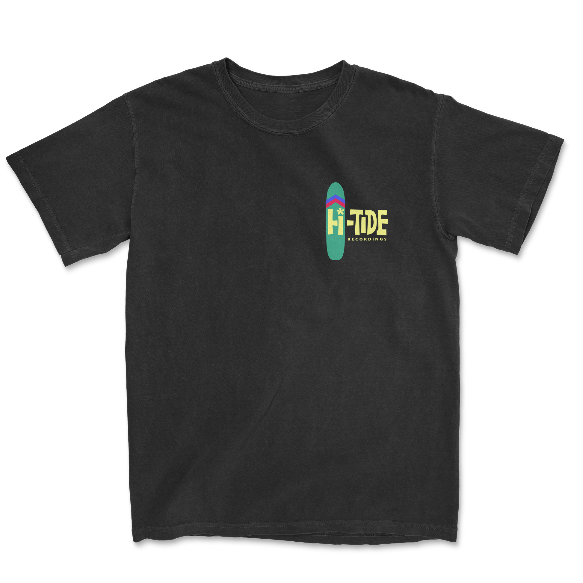 Hi-Tide Vintage "Surfboard" T, designed by the great Fred Lammers from Norway! Originally released 2017. 4-color left chest print on BLACK SAND garment-dyed Comfort Colors 1717 heavyweight T for a relaxed fit & well-loved feel.